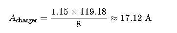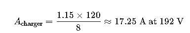Charger power ≈ 192 V × 17.25 A ≈ 3.31 kW. Round up and include temperature compensation.