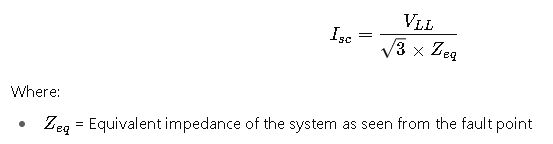 I_sc (A) = (Transformer kVA × 1000) / (√3 × V_line × (Z% / 100))