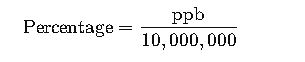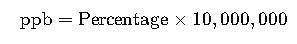 Example: 0.01% = 0.01 × 10,000,000 = 100,000 ppb
