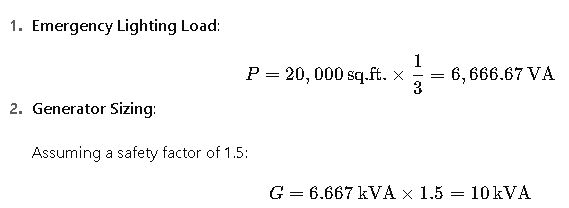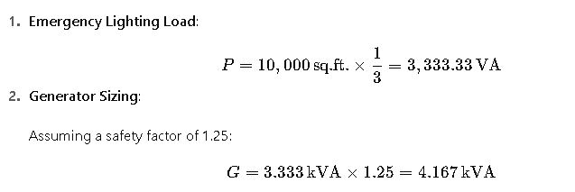Conclusion: A generator with a capacity of at least 4.2 kVA is recommended to support the emergency lighting system.
