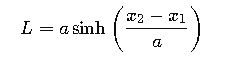 d = a ( cosh(L/(2a)) − 1 ).Then length:
