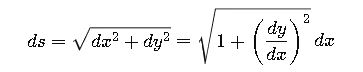 The length of the cable between two points is obtained by integrating the arc length formula: