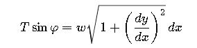 The weight of the segment is w ds, where w is the weight per unit length. In equilibrium, the vertical component of the tension balances the weight: