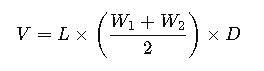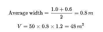| Length (m) | Average Width (m) | Depth (m) | Volume (m³) |
