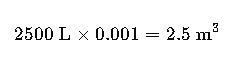- Conversion: 1 liter = 0.001 m³