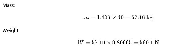 Result: The gas inside weighs about 560 N (~57 kg mass).