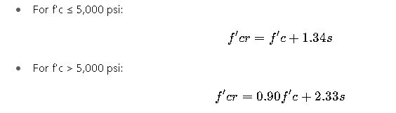 To account for variability in concrete strength, the ACI provides equations to determine the required average compressive strength: