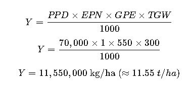 - Biological Factors: Lodging (plants falling over), pest outbreaks, or unseasonal rain can reduce harvestable yield compared to theoretical values.