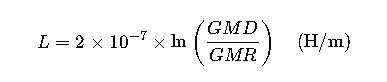 Inductance: L = (μ₀/2π) · ln(D/GMR) H/m