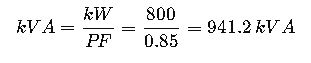 Table 2. Conversion of kW to kVA at Power Factor = 0.8 (Common Industrial PF)