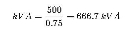 An industrial facility runs induction motors totaling 500 kW at a PF of 0.75. Engineers must size the transformer.