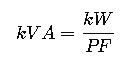 Table 1. Conversion of kW to kVA at Power Factor = 1.0 (Unity PF)