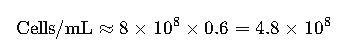 OD_corr = OD_meas × (1 cm / pathlength_cm).2) Cells per mL (uncorrected dilution):