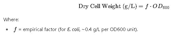 - Example: If OD600 measured = 0.9 at 1:10 dilution, then corrected OD600 = 0.9 × 10 = 9.0