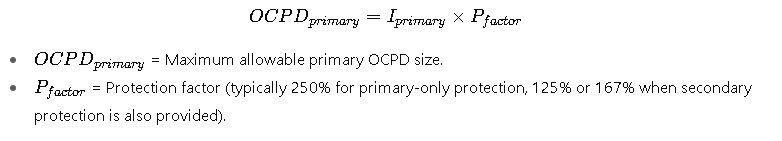 Formula 3: Maximum Primary OCPD (Per NEC 450.3(B))