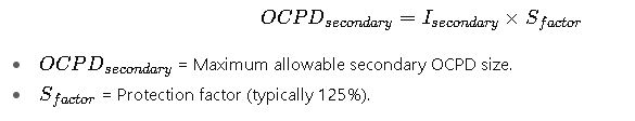 Formula 4: Maximum Secondary OCPD (Per NEC 450.3(B))
