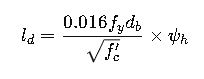For bars with standard hooks, the development length is adjusted by a modification factor ψh: