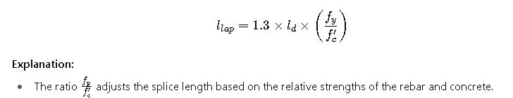 - The factor 1.3 accounts for the reduced bond strength at the splice interface.