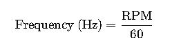 This formula is derived from the definition of frequency as the number of cycles per second. Since RPM measures revolutions per minute, dividing by 60 converts the time unit to seconds, yielding the frequency in Hertz.