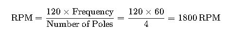 This calculation indicates that a 4-pole motor operating at 60 Hz will have a synchronous speed of 1800 RPM.