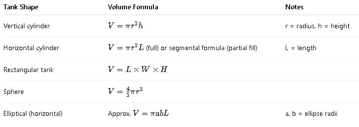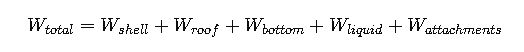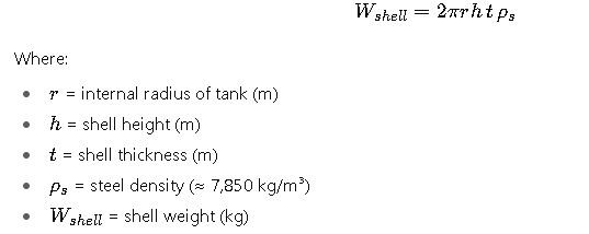 Tank weight calculation involves shell weight, roof weight, bottom weight, and liquid load. Below are the standard formulas with detailed explanations.