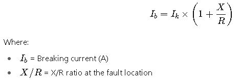For faults near the generator, the breaking current is calculated considering the decrement of the short-circuit current over time.
