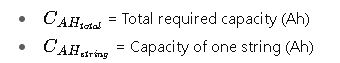 - Parallel: Divide the total required Ah by the Ah of one string.