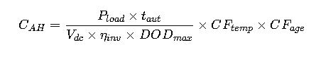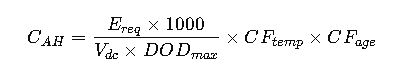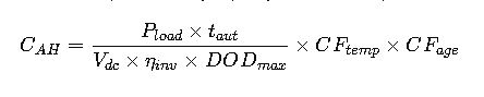 The standard approach to calculate required battery capacity (C_AH) in ampere-hours: