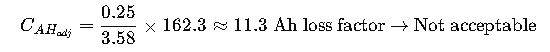 Multiply by 10: ≈ 3.58 hours equivalent → capacity must be scaled for 0.25 h: