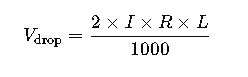 For a single-phase circuit, the voltage drop (V) can be calculated using: