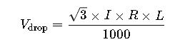 Three-phase: Vd = √3·I·(R·L/1000 + X·L/1000)