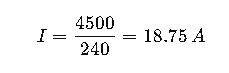 A homeowner in the United States installs a 4,500 W electric water heater. The supply is 240 V AC. The installer must determine the current draw to select the correct circuit breaker and wire gauge.