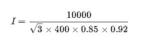 An industrial facility operates a 10 kW three-phase induction motor at 400 V AC, 50 Hz, with a power factor of 0.85 and an efficiency of 92%. The engineer must calculate the line current.