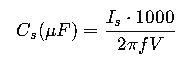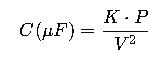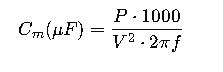 Esta fórmula permite seleccionar rápidamente un capacitor usando tablas de coeficientes normalizadas por potencia y tensión.