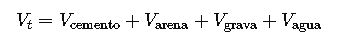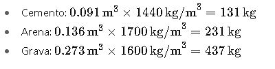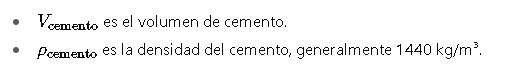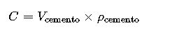 La cantidad de cemento (C) se determina multiplicando el volumen de cemento por su densidad: