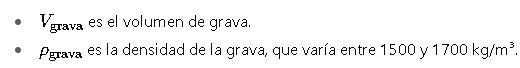 La cantidad de grava (G) se calcula de manera similar: