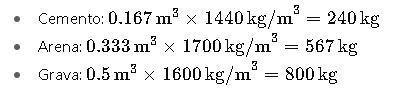 1:1.5:3 | 350 | 500 | 750 | 1500 | 220 | Concreto de alta resistencia |