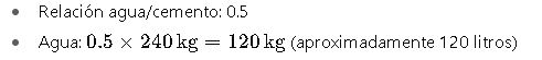 - Cemento: 240 kg
